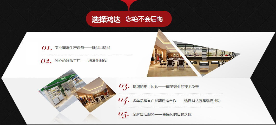 成都博鑫鴻達展柜有限公司成立于2016年,坐落于成都市新都區斑竹園鎮順江工業園區,生產廠房占地面積50余畝,公司擁有員工10余名,公司獨立生產的產品有:展柜、倉儲貨架、庫房貨架、倉庫貨架、汽車4S貨架、超市貨架、賣場貨架、******鈦合金貨架、鈦合金旋轉柜、展柜展示柜、各種展架展示架、從事倉儲的研制、生產及銷售。